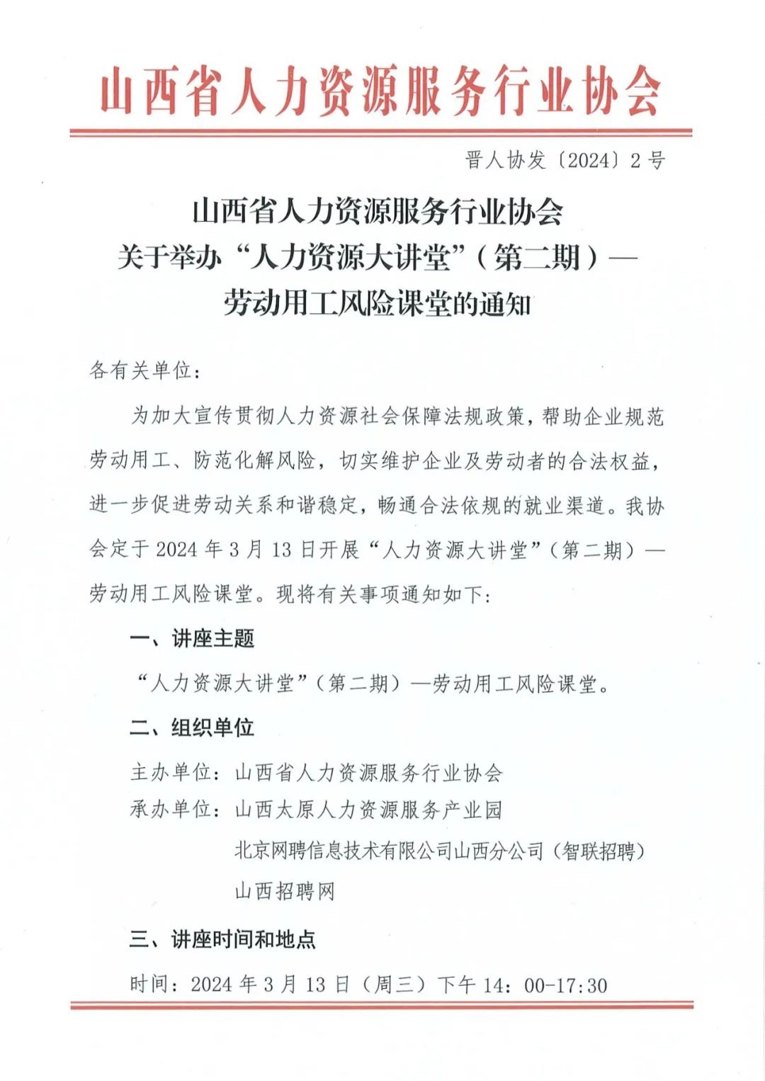 關(guān)于舉辦“人力資源大講堂”(第二期)— 勞動用工風(fēng)險課堂的通知